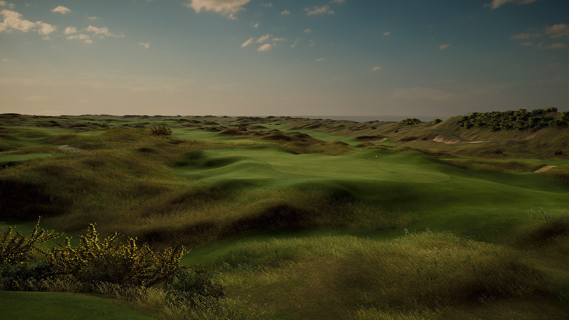 - Der spilles med hard fairways og medium greens, 10 på stimpmeter, medium pins og breezy vind.
